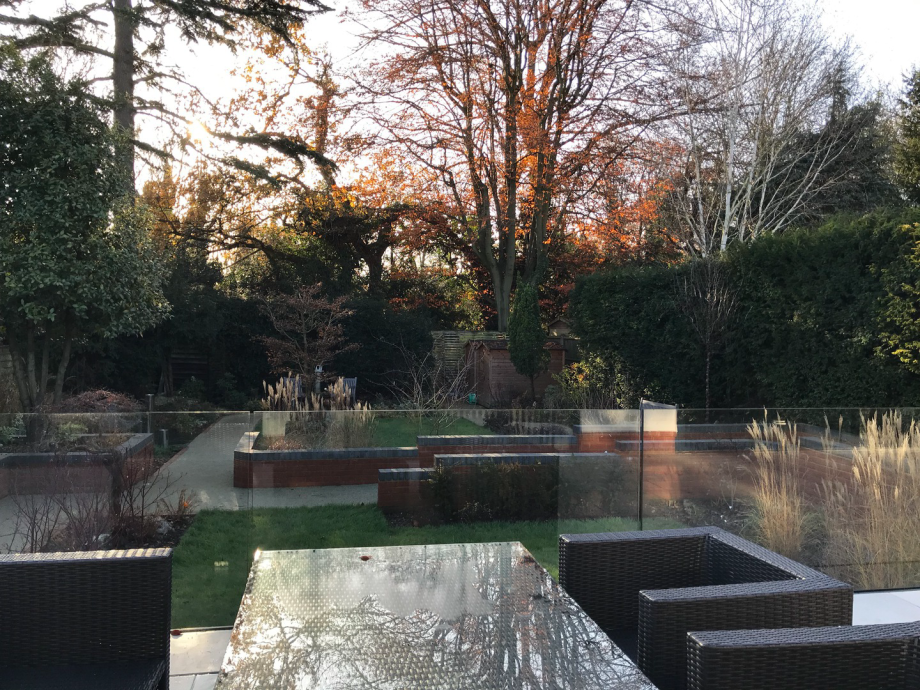 Materials and colours used within the garden were referenced from the newly built family home and help pull the House and Garden together as one unified space. Planting has contemporary elements, but was heavily influenced by the bordering edge of woodland. The helps the garden have a place within the local landscape.