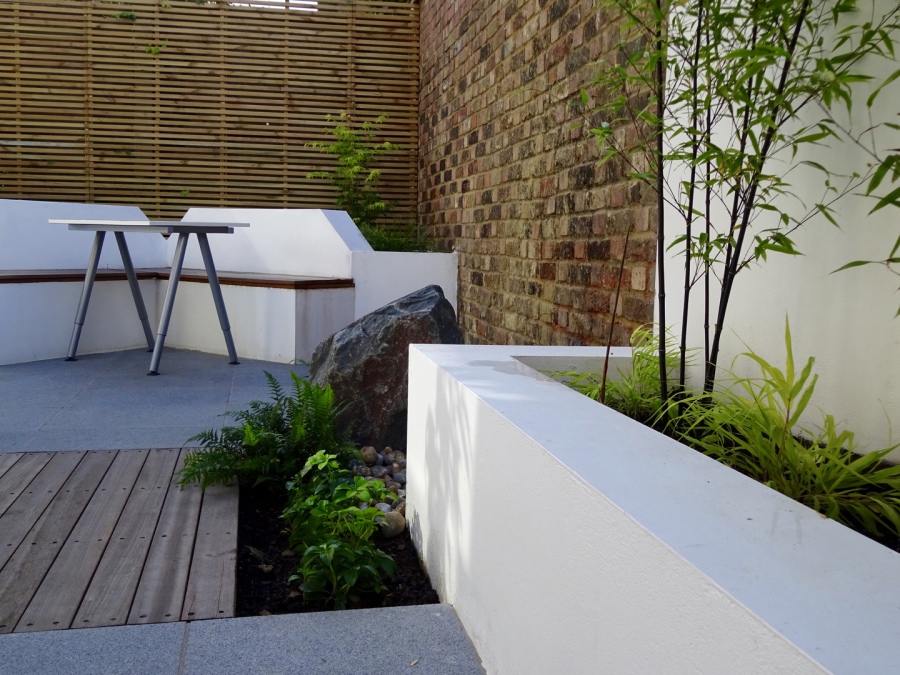 A small courtyard garden in North london in need of a complete rebuild. The clients requested a modern garden with japanese influence. It was to be a place to sit relax and entertain.